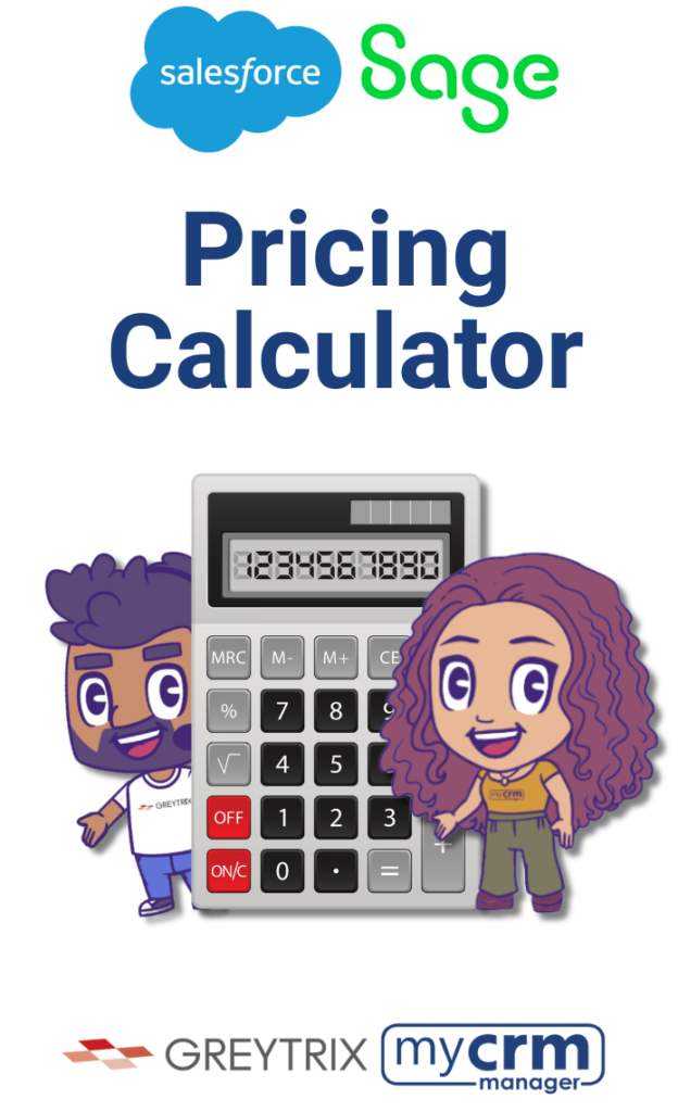 The calculator below can be used to provide a rough estimate for the software costs and implementation services required to deploy the GreytrixGUMU™ integration – with the option to have us assist with the general setup and training of Salesforce.com. Detailed user experience videos for your Sage accounting system can be found on these pages Sage 100, Sage 300, Sage X3, Sage Intacct